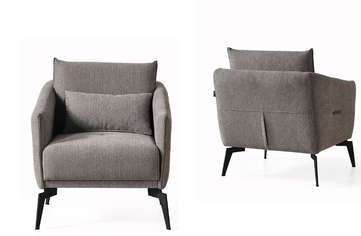- De rugleuningen en armleuningen zijn strak en rechthoekig, wat zorgt voor een moderne, boxy look.