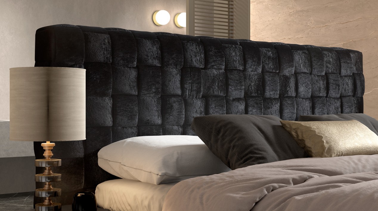 - Luxe gestoffeerd hoofdbord, soft touch in gevlochten afwerking.