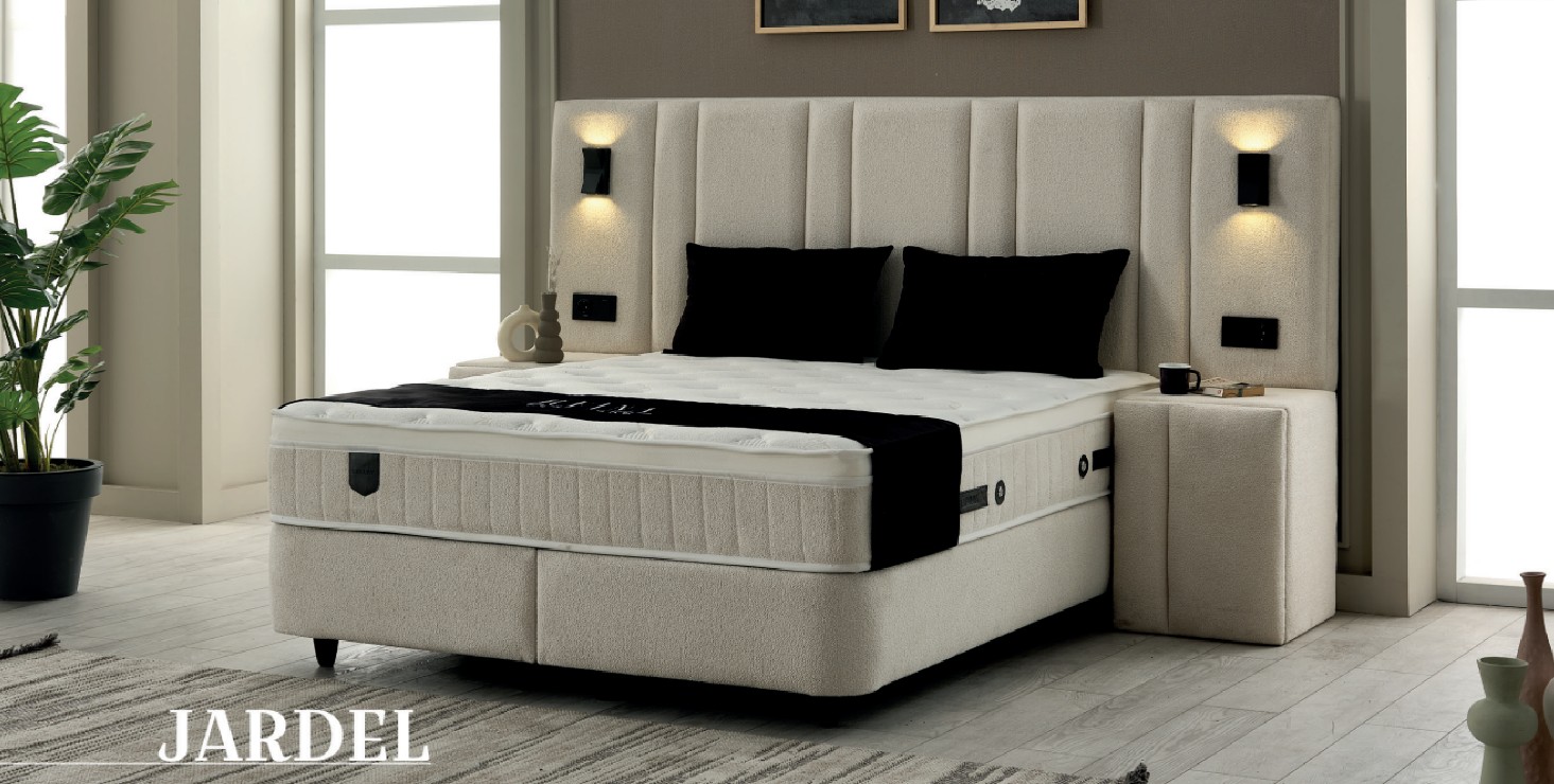 De Jardel Boxspring, uitgerust met het Kenzo matras, zorgt voor een versterkte en fitte start van de dag. Dankzij de stof die is gebreid met speciale magnetische draden, helpt het matras de negatieve en positieve ionen in het lichaam in evenwicht te brengen. Dit unieke kenmerk helpt bij het reguleren van de bloedsomloop en het verminderen van vermoeidheid. Het 2,38 mm Bonnellveersysteem zorgt voor een duurzame en stabiele basis voor deze energiekende slaapervaring.