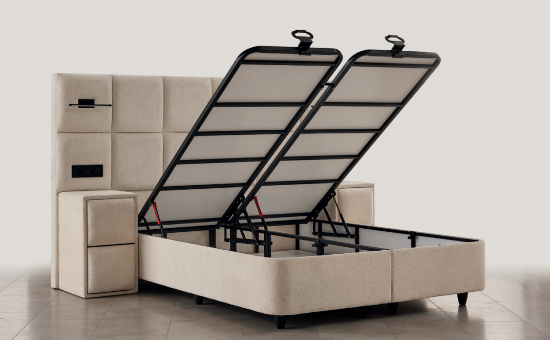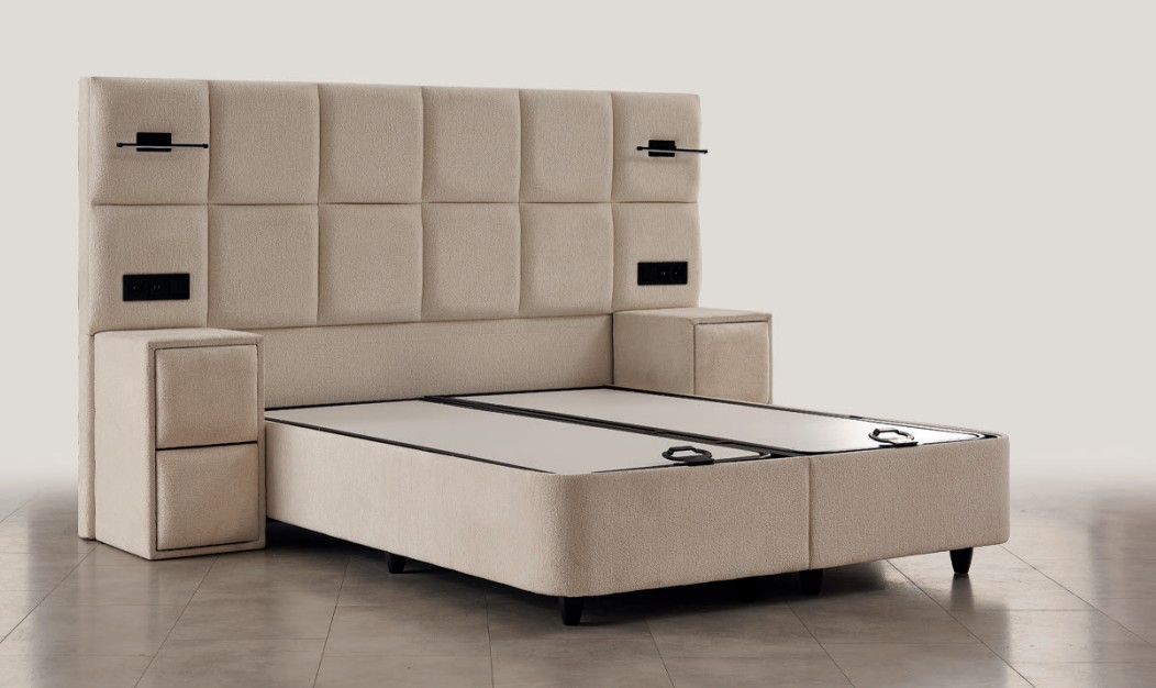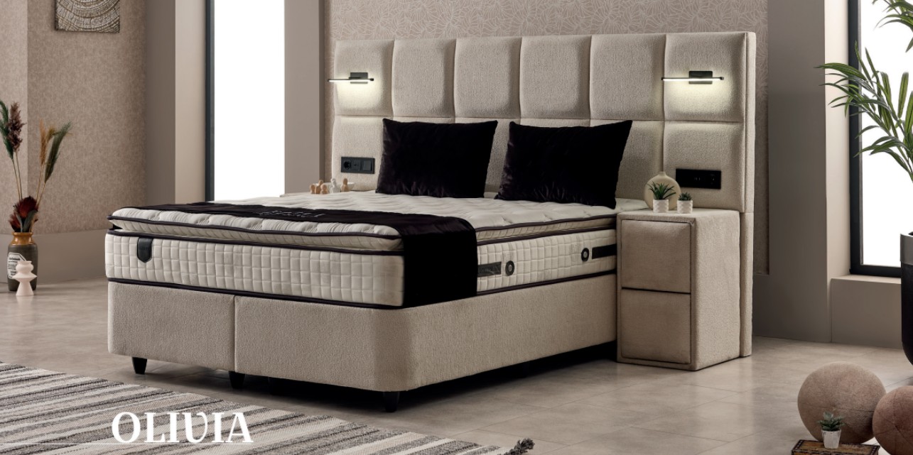 Het Olivia bed is speciaal ontworpen om de dag te beginnen alsof je herboren bent na een diepe slaap. Dit bed staat symbool voor rust en vrede, ver weg van de dagelijkse chaos. Met zijn minimalistische lijnen en de nadruk op geometrische vormen is het een uitstekend voorbeeld van modern design met een rijke uitstraling. Het matras valt op dankzij de luxueuze touch van de katoenen satijnen stof. Deze speciale stof voegt zachtheid en gladheid toe en onderscheidt zich door zijn uitstekende ademend vermogen.