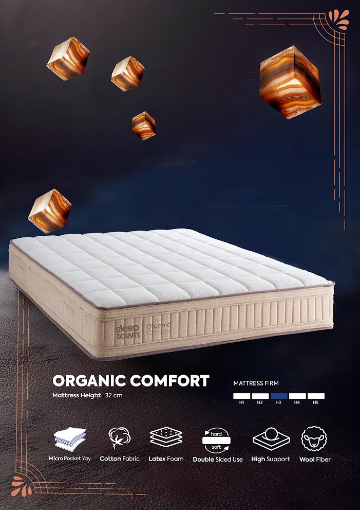 De Organic Comfort matras biedt natuurlijke ondersteuning met een luxueus gevoel. Het micro pocketveringsysteem zorgt voor precieze drukverdeling en optimale ventilatie. Dankzij de latex foam laag en wollen vezels geniet je van een zacht, temperatuurregulerend slaapoppervlak. De katoenen stof voelt natuurlijk en ademend aan, terwijl de dubbelzijdige constructie met een harde en zachte zijde aanpasbaar comfort biedt. De hoge ondersteuning maakt deze matras ideaal voor wie gezonde, evenwichtige rust zoekt.