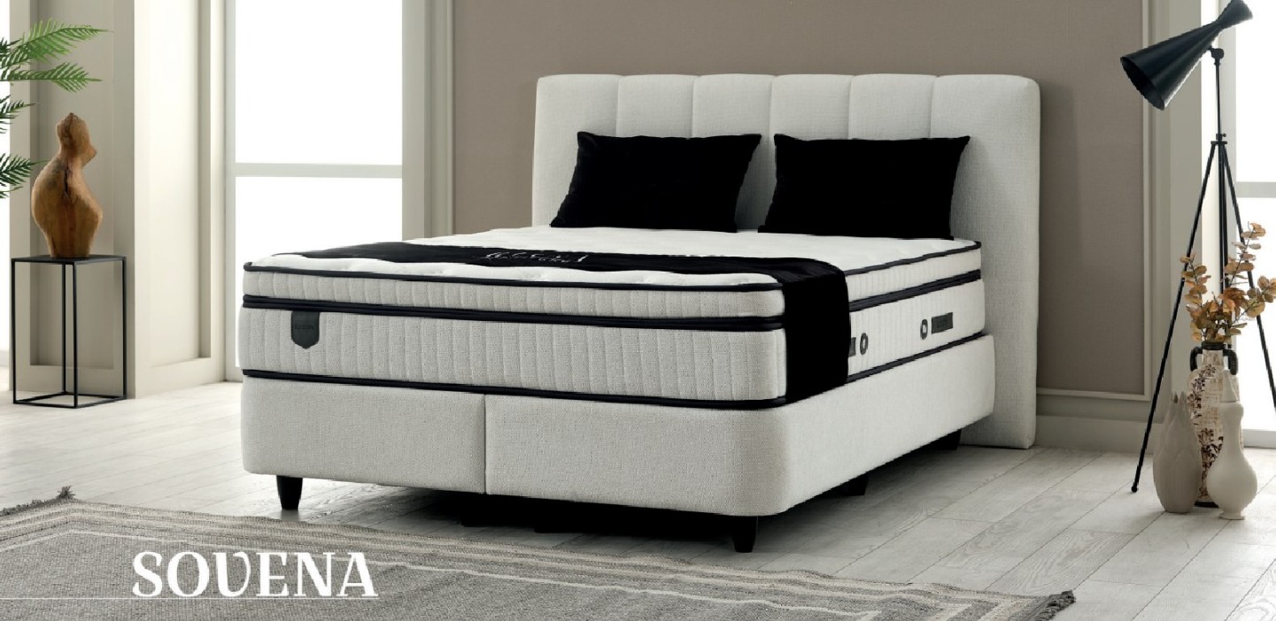 De Sovena matras is het toppunt van luxe en hoog comfort. Dankzij de extra royale vezels in de vulling valt u sneller in slaap en geniet u van een betere slaapkwaliteit, met het gevoel alsof u op wolken slaapt. Dit bed creëert een ontspannende omgeving met zijn speciale comfortlaag en orthopedische veerfunctie die het lichaam uitstekend ondersteunt. De Viscon-garenstructuur biedt een unieke slaapervaring zonder blootstelling aan zweet. De charme van de Sovena zit verborgen in de details, met een zorgvuldig vervaardigde textuur die zachtheid uit de natuur biedt.