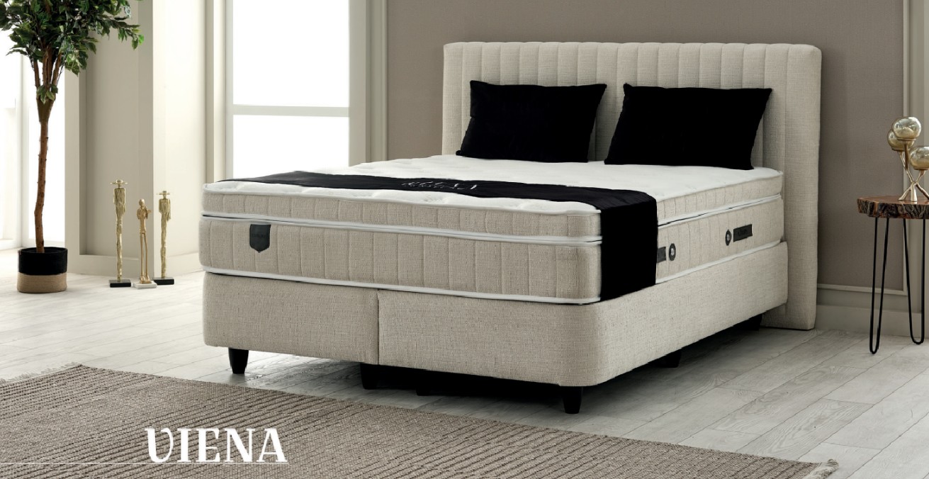 De Viena matras is het toppunt van luxe en hoog comfort. Dankzij de extra royale vezels in de vulling valt u sneller in slaap en geniet u van een betere slaapkwaliteit, met het gevoel alsof u op wolken slaapt. Dit bed creëert een ontspannende omgeving met zijn speciale comfortlaag en orthopedische veerfunctie die het lichaam uitstekend ondersteunt. De Viscon-garenstructuur biedt een unieke slaapervaring zonder blootstelling aan zweet. De charme van de Viena zit verborgen in de details, met een zorgvuldig vervaardigde textuur die zachtheid uit de natuur biedt.