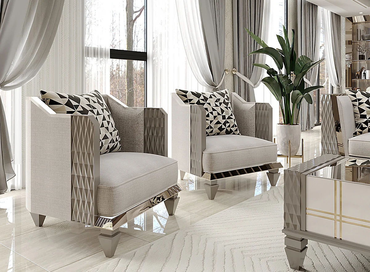 - Fauteuil (Armchair): De fauteuils volgen de zachte en volle vorm van de banken en bieden een diep zitcomfort.